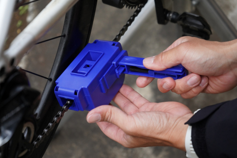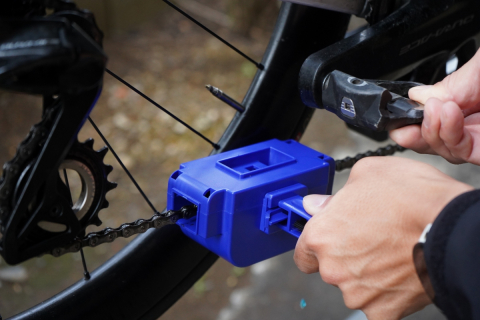 ペダルを回転させるだけで、汚れを効率よく落とす自転車専用チェーンクリーニングマシン