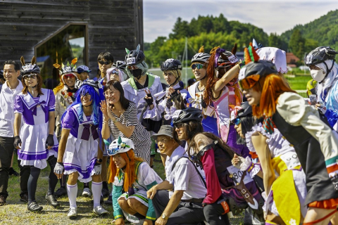 コスプレクラス参加選手はレース観客の皆さんにも大人気。記念撮影にも気軽に応じる