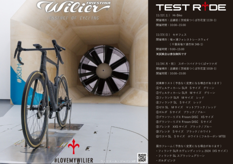 ウィリエールが11月22~24日までショップやイベントで試乗会を開催