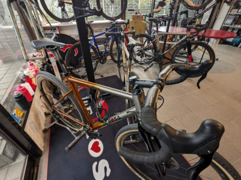 デローザが神奈川県横浜市のBIKE TOWNでチタンバイクを展示中
