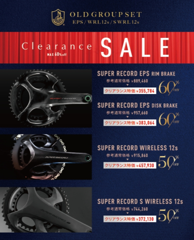 カンパニョーロのEPSグループセットやSuperRecord WRL 12sなどが50~60%OFFになるクリアランスセール