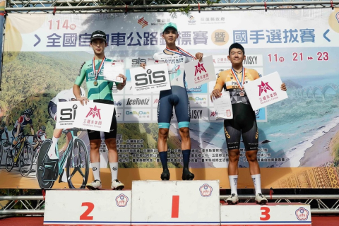 画像 タイムトライアルオランダ選手権男子エリート表彰台:2位ディラン・ファンバーレ(ヴィスマ・リースアバイク)、1位ダーン・ホーレ(リドル・トレック)、3位アクセル・ヴァンデルテューク(メテック・ソーラーワットp/bマンテル) photo:CorVos 2025/06/25 - 08:20