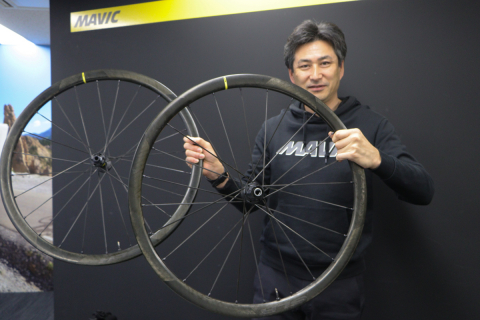 セラミックベアリングへの換装を終えリフレッシュしたCOSMIC SLR32 とマヴィックジャパンの村上氏