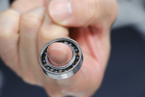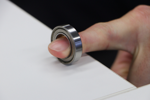 セラミックベアリング単体を転がしてみる。グリスが封入されているため回転の軽さは感じ取れない