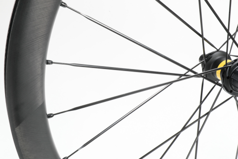 ユニディレクショナルカーボンリムにブラックの光沢で視認させるロゴが渋い