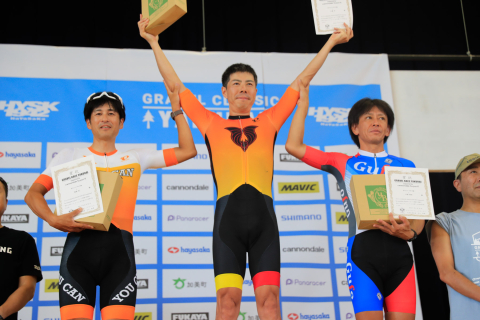画像 男子エイジ40‐49歳 1位大倉壮(teamYOUCAN),2位高野淳(TEAM YOUCAN)、3位中里聡史(Gufo Cycle Works) photo:Makoto AYANO 2025/08/30 - 15:29