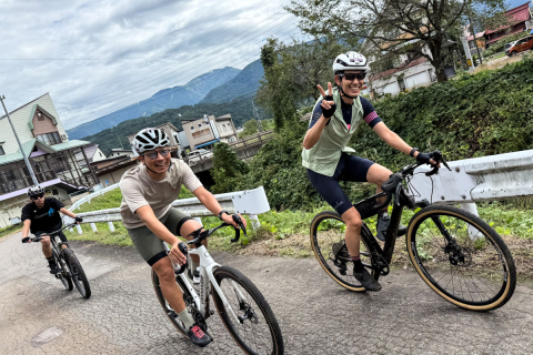 ピースするのはキャノンデール代理店の若社長。来年に向けて視察ライドを楽しんでました
