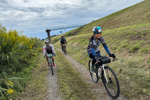 河川敷の堤防の上は幹線道路。グラベルなら安全快適だ