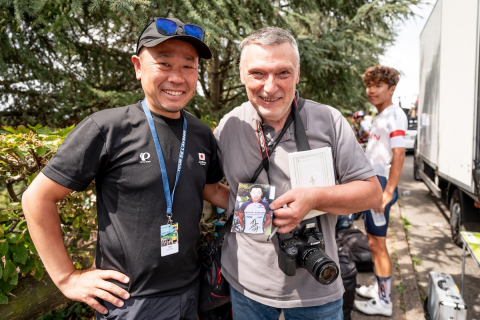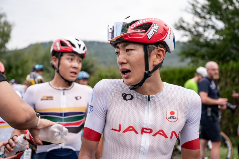 画像 チームメイトの訪問を受けた望月蓮(Team Buffaz Gestion de Patrimoine) photo:Japan Cycling Federation / Sonoko Tanaka 2025/08/26 - 17:32