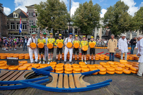 アルクマールはチーズマーケットで知られる街。スタート地点もチーズ一色