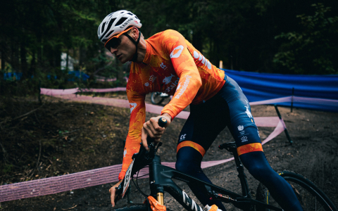コースを試走するマチュー・ファンデルプール(オランダ)