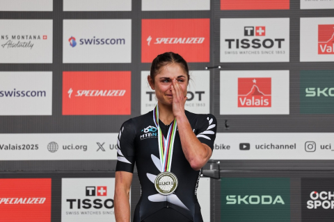サマラ・マクスウェル(ニュージーランド)は追走届かず2位。涙を流した