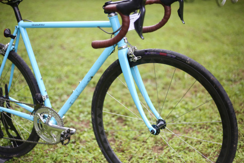 今年4月にデビューしたJFF#503。リムブレーキのクロモリロードバイクだ