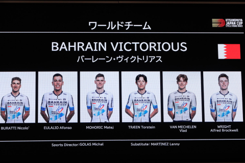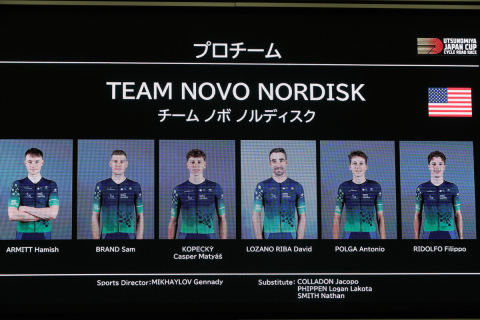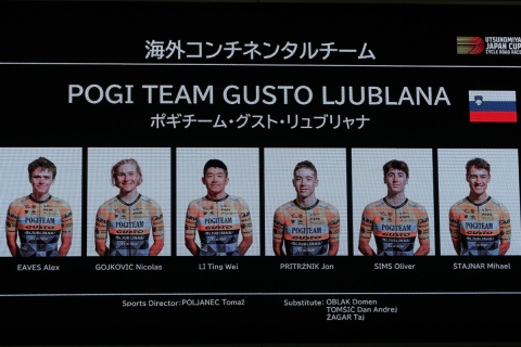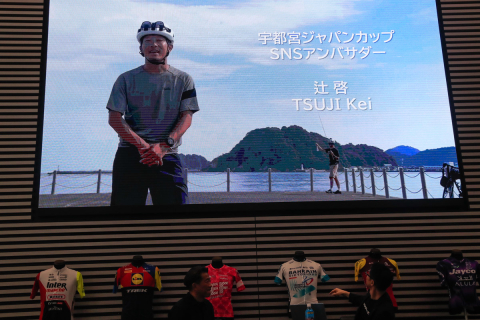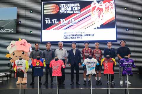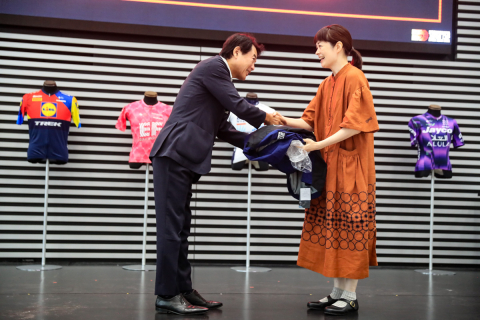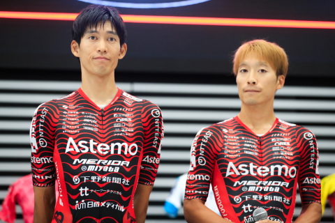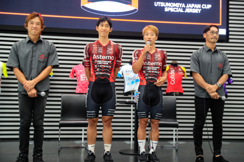 アステモを新スポンサーに迎え、餃子をモチーフにしたデザインのジャージで登壇した宇都宮ブリッツェン
