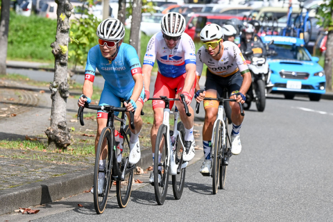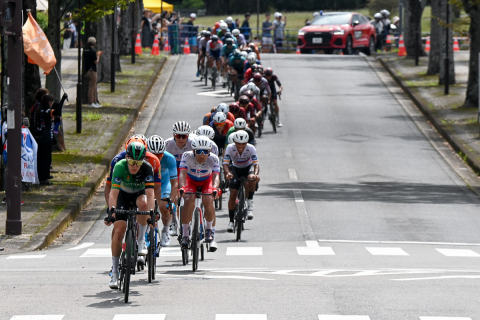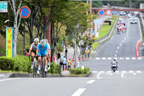 レース終盤、増田成幸(TEAM UKYO)がメイン集団先頭に出てペースアップを図る
