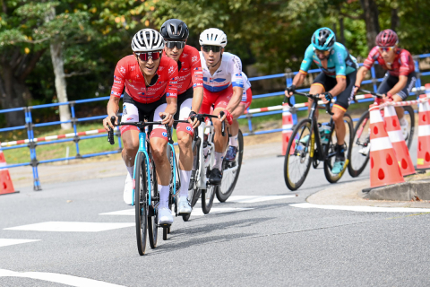 レース終盤、フォン・チュン・カイ(宇都宮ブリッツェン)がメイン集団から飛び出すが…