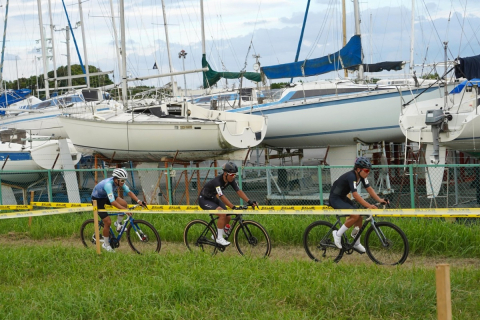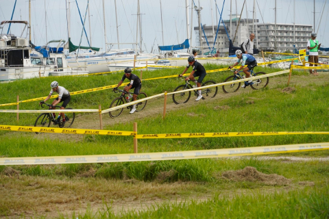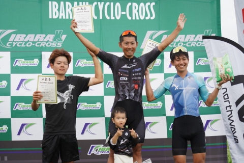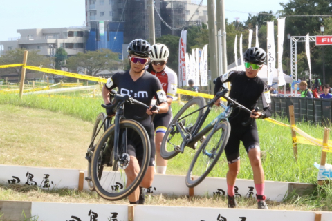 序盤の混戦を上手く抜け出した小坂光(Utsunomiya Lux)と佐々木啄人、高木三千成(AX cyclocross team)が先頭パックを形成