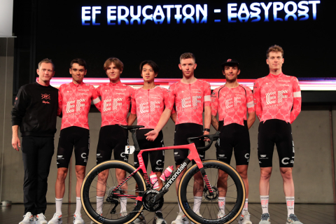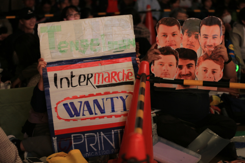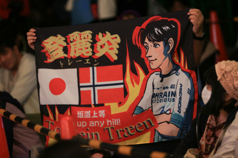 EFエデュケーション・イージーポストの応援フラッグを持ったファン