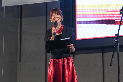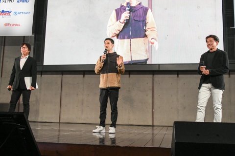 大会の実況や解説をする今中大介さん(左)、栗村修さん(中央)、アリーさん(右)