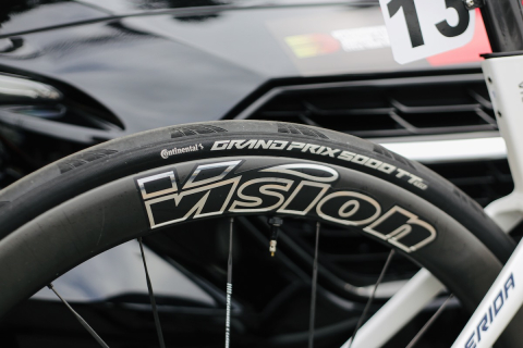 ホイールはヴィジョンのMETRON 45 RS、タイヤはコンチネンタルのGRAND PRIX 5000TT TR(28mm幅)