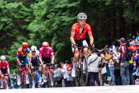 ニコロ・ガリッポ(イタリア、TEAM UKYO)が6周回目のKOMを単独通過し、山岳賞を獲得