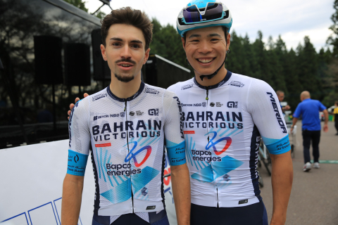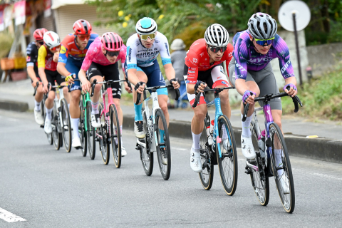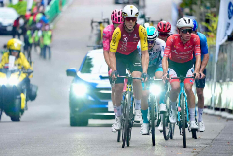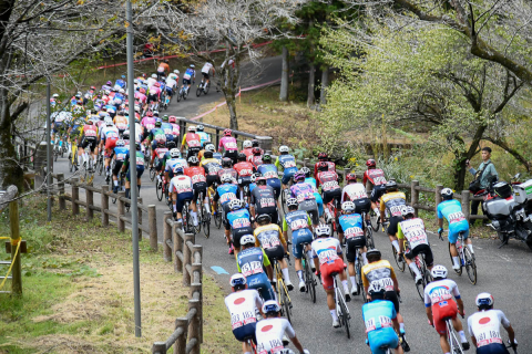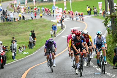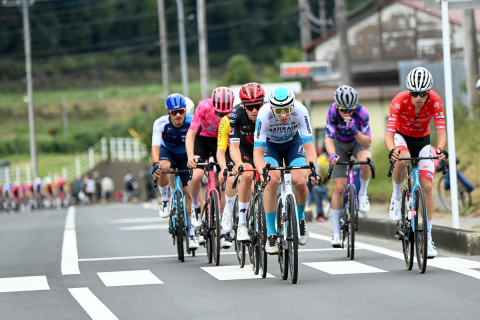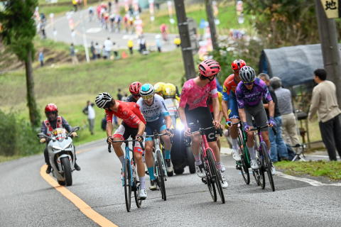 残り2周、レニー・マルティネス(フランス、バーレーン・ヴィクトリアス)が古賀志林道の登りでペースを上げる