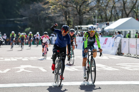 喜びを爆発させる佐藤光(TeamCyclersSNEL)