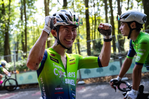 画像 高校生の寺町悠希(北海道帯広南商業高校)が集団からやや前、曽根田仁(TeamUKYO Reve)とのマッチスプリントを制して3位に photo: Yuichiro Hosoda 2025/10/18 - 13:14