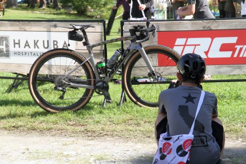iRCのグラベルタイヤ、BOKENシリーズが並ぶ