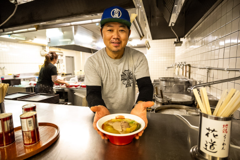 画像 「花道」店主の朝生真吾さん(群馬、元87期)。お忙しいところ写真をお願いしたにもかかわらず「ありがとうございます!」と言いながら応じてくださった photo: Yuichiro Hosoda 2025/10/29 - 22:40