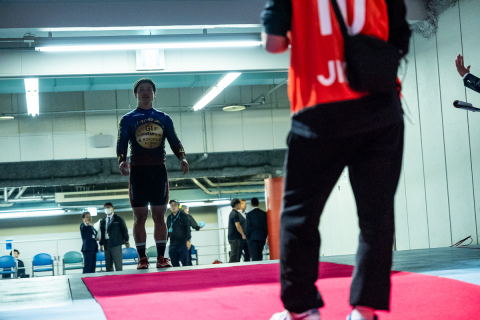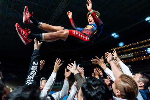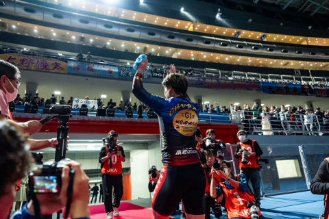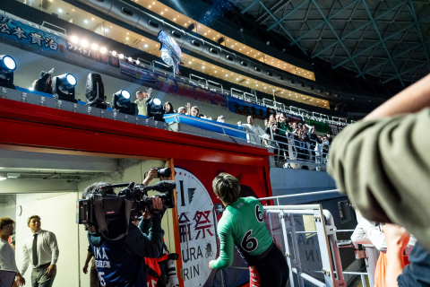 阿部拓真(青森)が、チャンピオンジャージを客席に投げ入れる