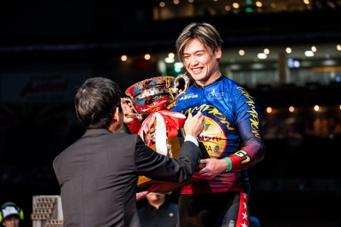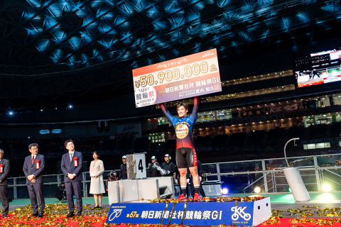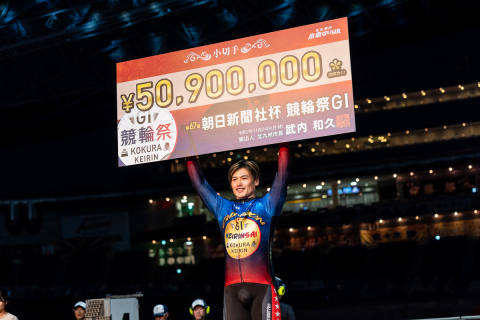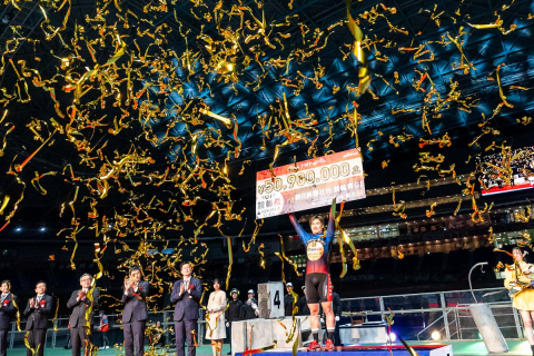 1着の賞金額も知らなかったと言う阿部拓真(宮城)が、賞金ボードを掲げる