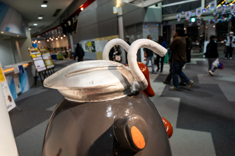 かねりんの被るキャップは、北九州メディアドーム型