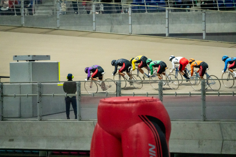 松井宏佑(神奈川)が前に車を出す中、残り2周に入ってすぐ先頭誘導員が離れる。