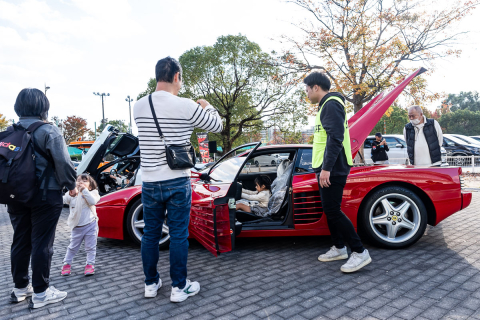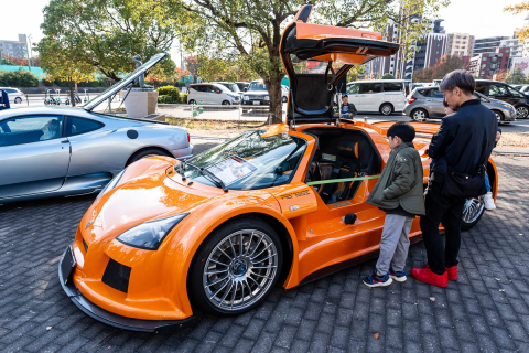 ドーム前の広場には、何台ものスーパーカーが集合。子供達はシートに座ることも出来た