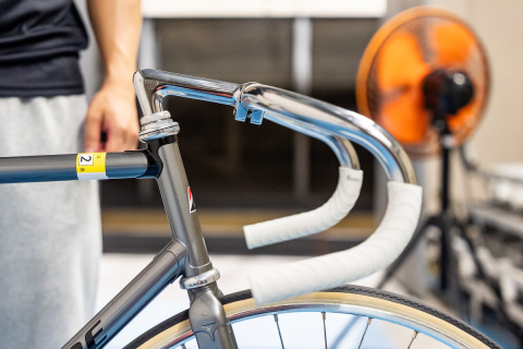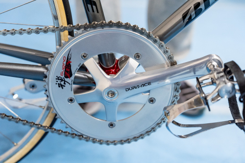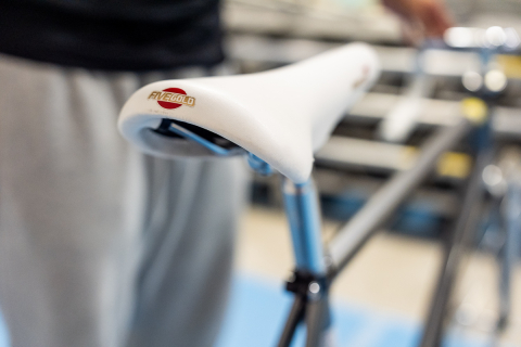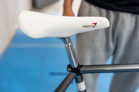 白のカシマックス ファイブゴールド7に跨る。チューブの繋ぎは、ブラックのラグがアクセントに