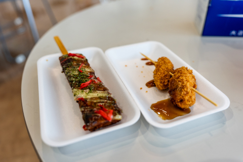これがお好み串とカキフライ串。あまりの空腹に、撮影を忘れてカキフライを1つ食べてしまいました…