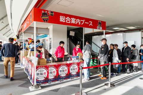 総合案内ブースでは抽選会が開催。扉の向こうまで、長蛇の列が出来ていた
