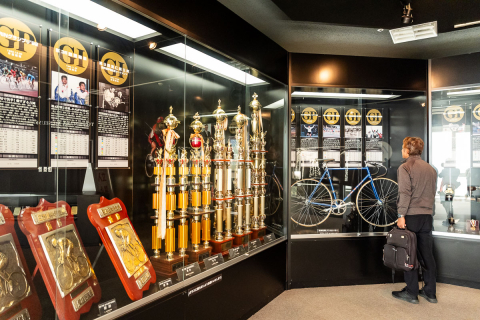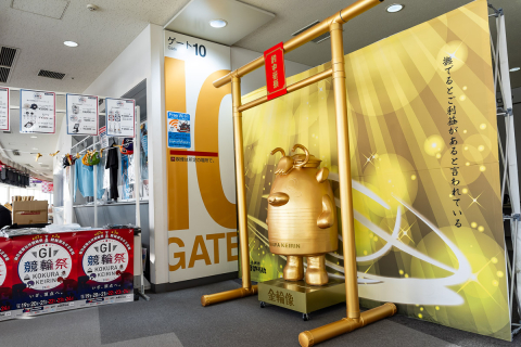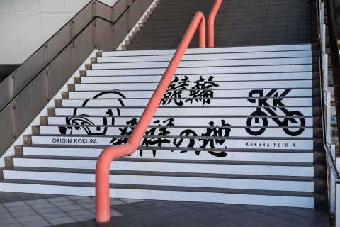 4Fメインエントランスへ向かう階段には「競輪発祥の地」の表示も