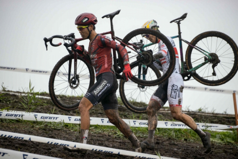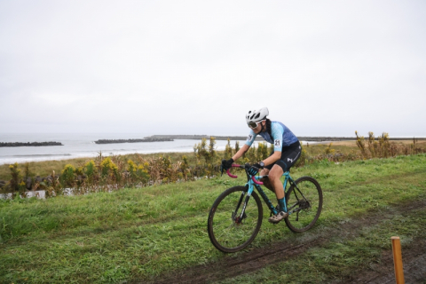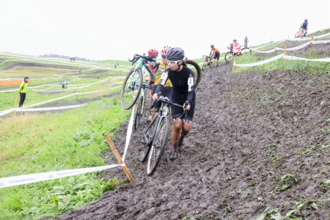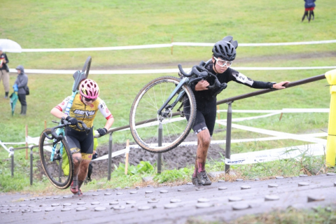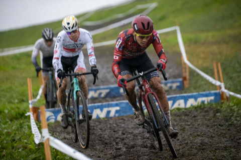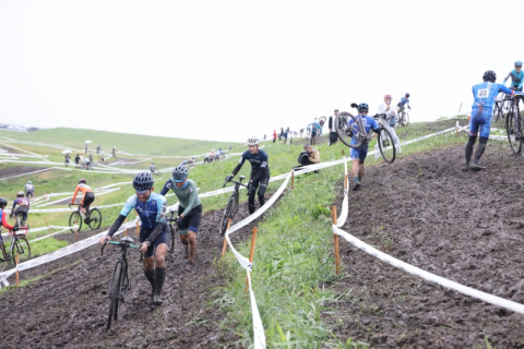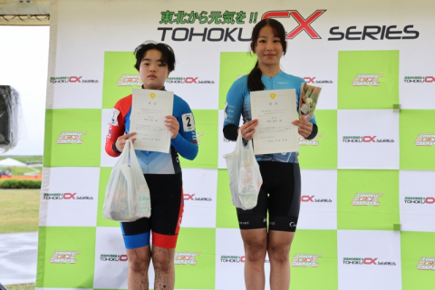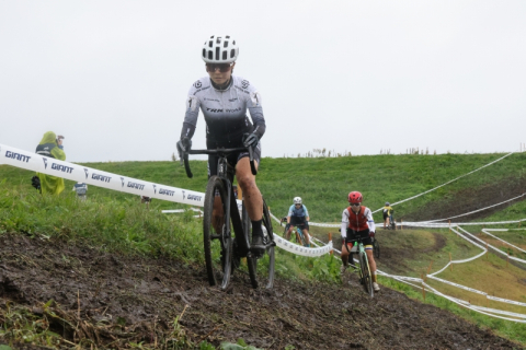 画像 WE1で独走を続ける石田唯(TRKWorks)の後方にはジュニアでトップの小林碧(AX cyclocross team)が迫る photo:Michinari TAKAGI 2025/10/27 - 11:48