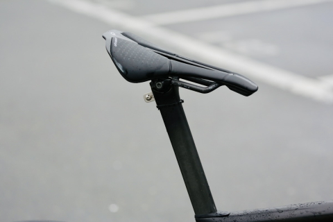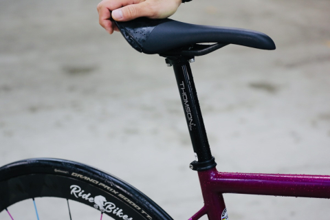 シートポストもアルミ。トムソンのゼロオフセットを使う