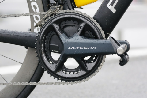 チェーンリングはデュラエース。トラック競技ベースなので大きいギアを選びたかったそう