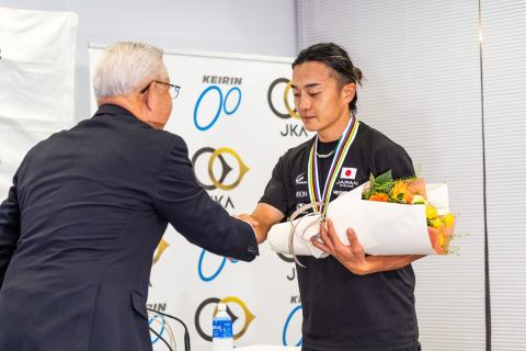 世界選手権メダル獲得記者会見は、品川シーズンテラスにあるJKAオフィスにて行われた
