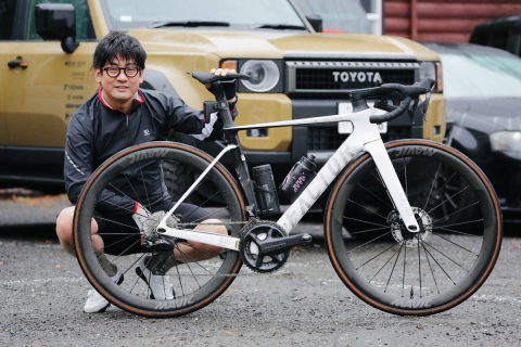 イチオシのTUFO製タイヤ「トラックのイメージが強いけど、実際とてもいいですね。真円度も高いし、グリップがとてもいい」
