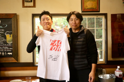 じゃんけん大会の優勝賞品は、プロ選手のサイン入りTシャツ。トライスポーツ社長の霊山高志さんよりプレゼント
