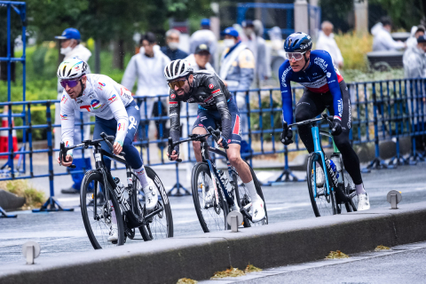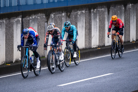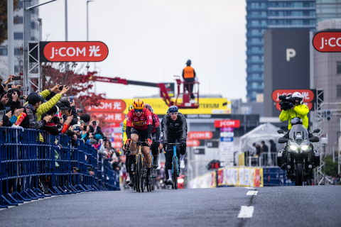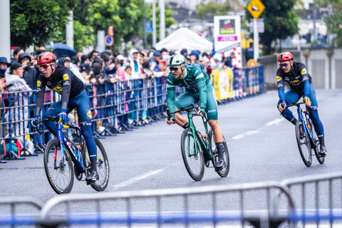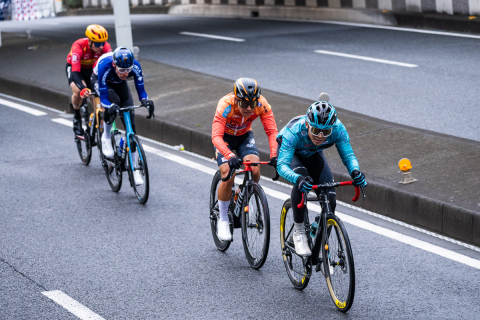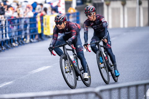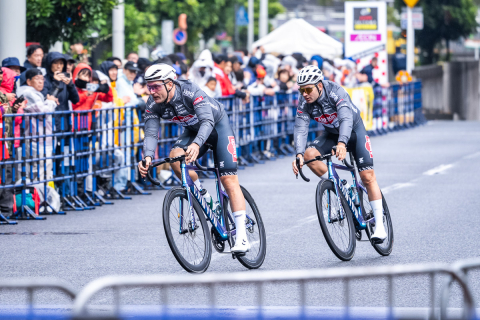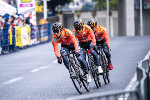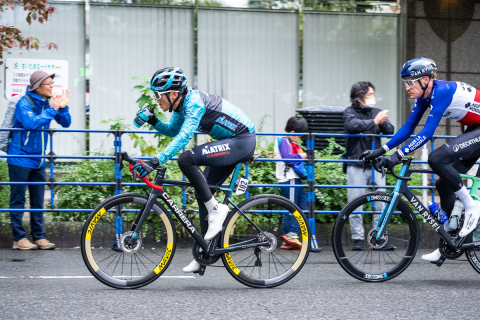 ヨナス・アブラハムセン(ノルウェー、ウノエックス・モビリティ)のアタックに追従した花田聖誠と小野寺玲(Astemo宇都宮ブリッツェン)