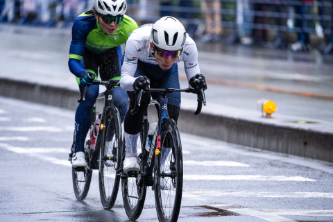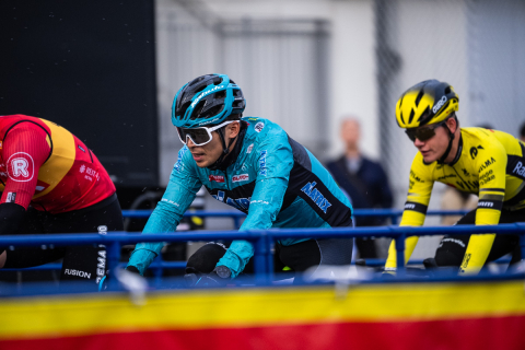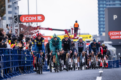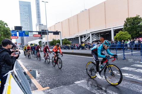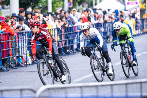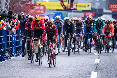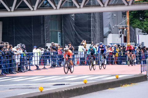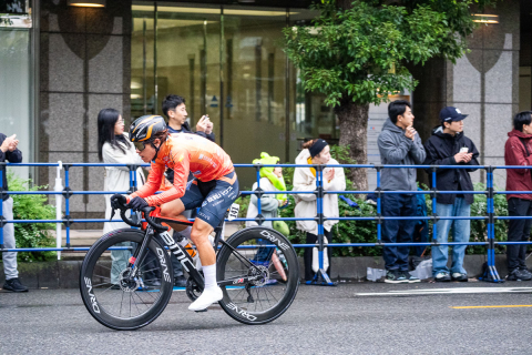 アクチュアルスタート直後のコーナーを先頭で回る花田聖誠(Astemo宇都宮ブリッツェン)