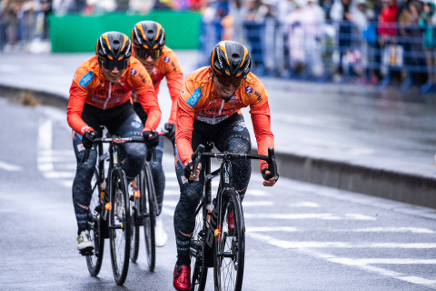 チームタイムトライアルを走るヴィスマ・リースアバイク