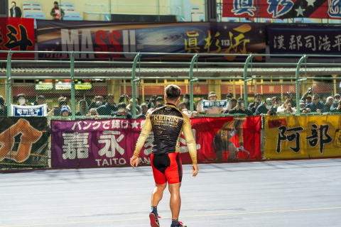 花火によるセレモニーを終えて郡司浩平(神奈川)が敢闘門へと向かう