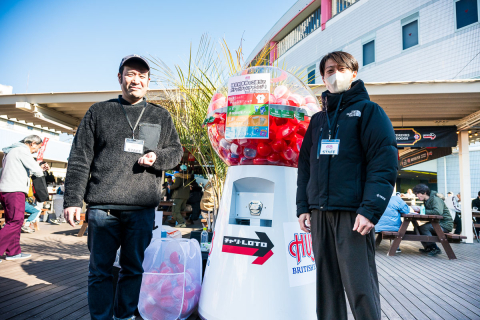 HUBブースでは選手サイン入りグッズやウィンディくんのぬいぐるみが当たるガチャポンも登場